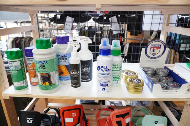まず、ウェアはケアアイテムとして、洗剤+撥水剤の処理を案内しております