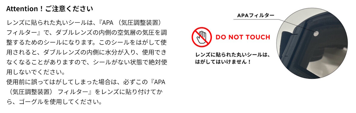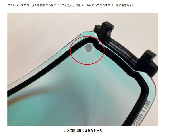 ※ゴーグルの製造年度やロットによりシールの色が異なる場合があります。