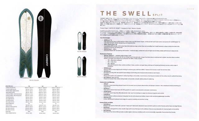 先日の展示会で気になったアイテム、 当店取り扱いのCARDIFF SNOWBOARDS ニューシェイプになる、SWELLシリーズ、154cmのみにテールスワローテール どうです、気になるシェイプですよね! ソリッドボードにも同シェイプがあります。 残念ながら、サンプルボードは間に合わず実物が見れませんでしたが、 大人な買い物として気になるアイテムです! ご参考までに、 さて、週末は先日の展示会での情報を店頭でお話できます ご来店お待ちいたします。