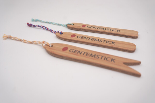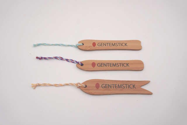 バンブーの木目がきれいなオリジナルキーホルダー。